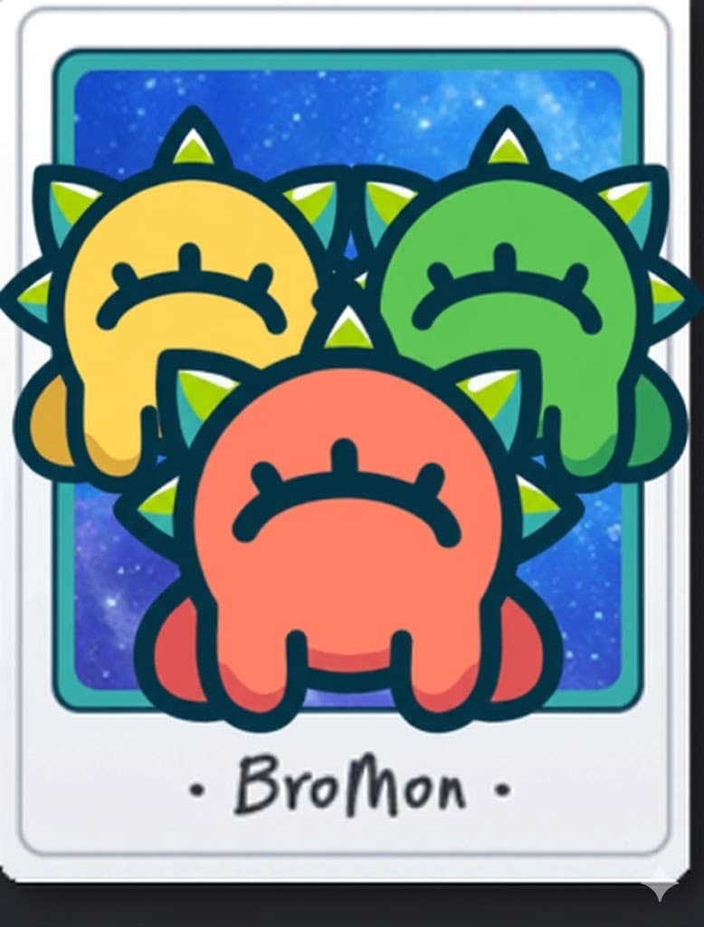 Appearance: The BroMen are 3 small monsters that look like BroMon. A red one is in the front, and a yellow one and green one sit side by side behind the red.
