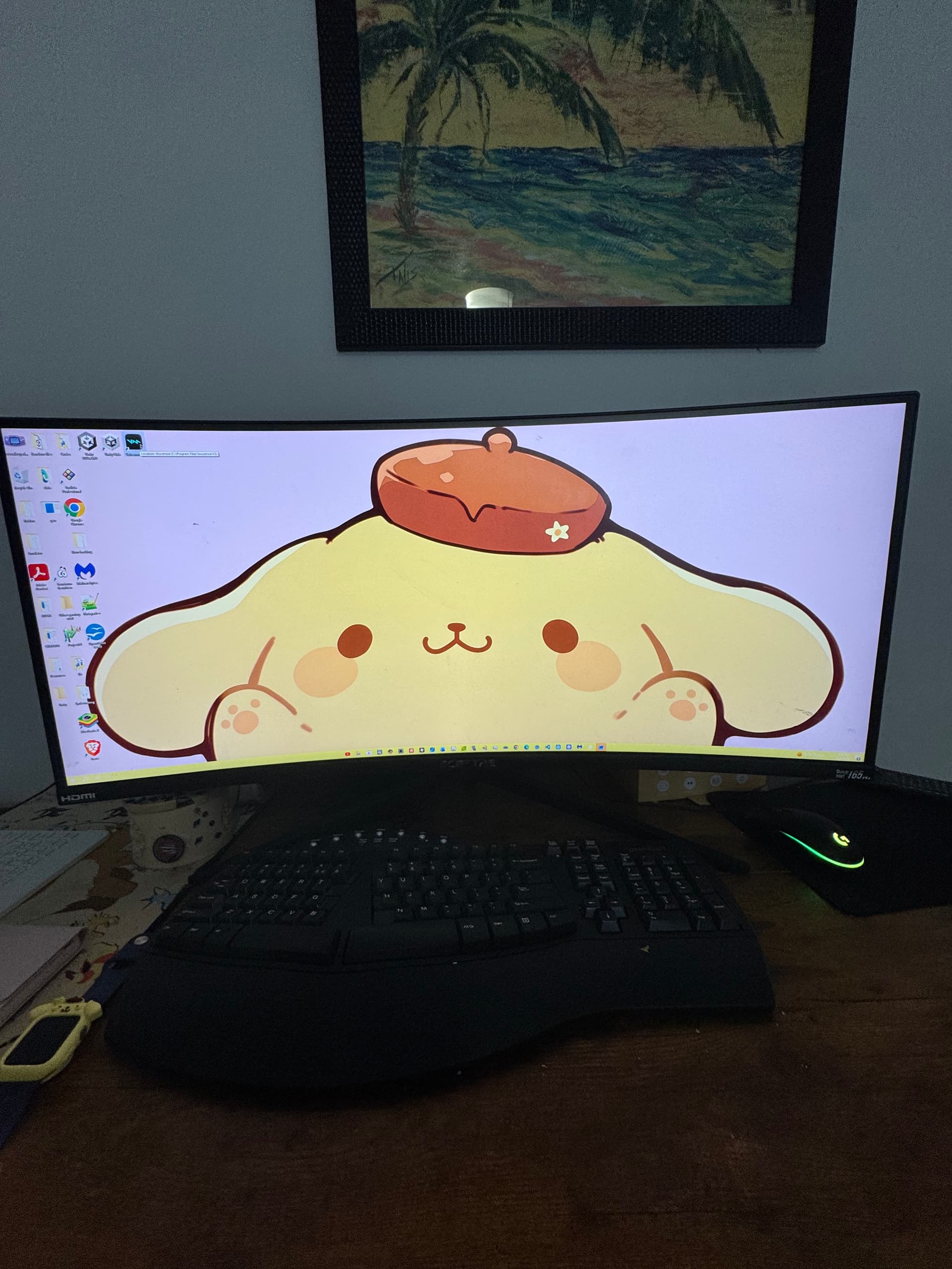 Wow looks super clean! Love how it sits on that ultrawide, pompompurin basically owns your desk now.